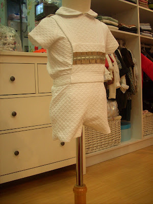 En la talla 18 meses un conjunto para niño en blanco con camel.